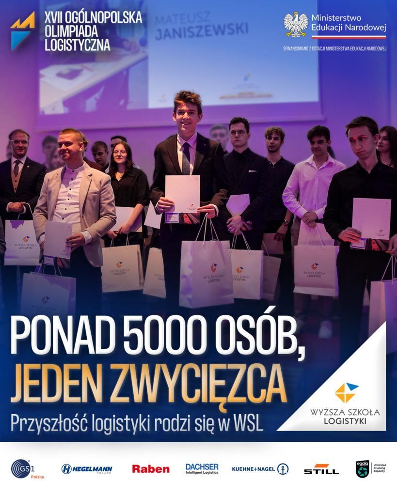 Z ogromną dumą informujemy, że Mateusz Janiszewski odniósł spektakularny sukces, zdobywając I miejsce w Ogólnopolskiej Olimpiadzie Logistycznej organizowanej przez Wyższa Szkoła Logistyki – WSL w Poznaniu!